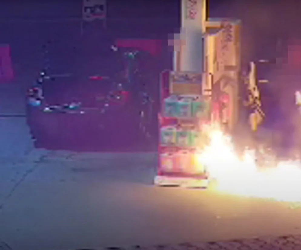 - Kierujący pojazdem marki Toyota, podjechał pod dystrybutor, gdzie wyjął pistolet do tankowania i rozlał paliwo na ziemię. Następnie podpalił rozlaną ciecz i odjechał z miejsca zdarzenia
