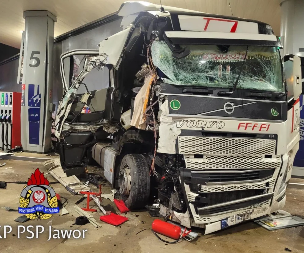 Ciężarówka wjechała na stację paliw pod Jaworem